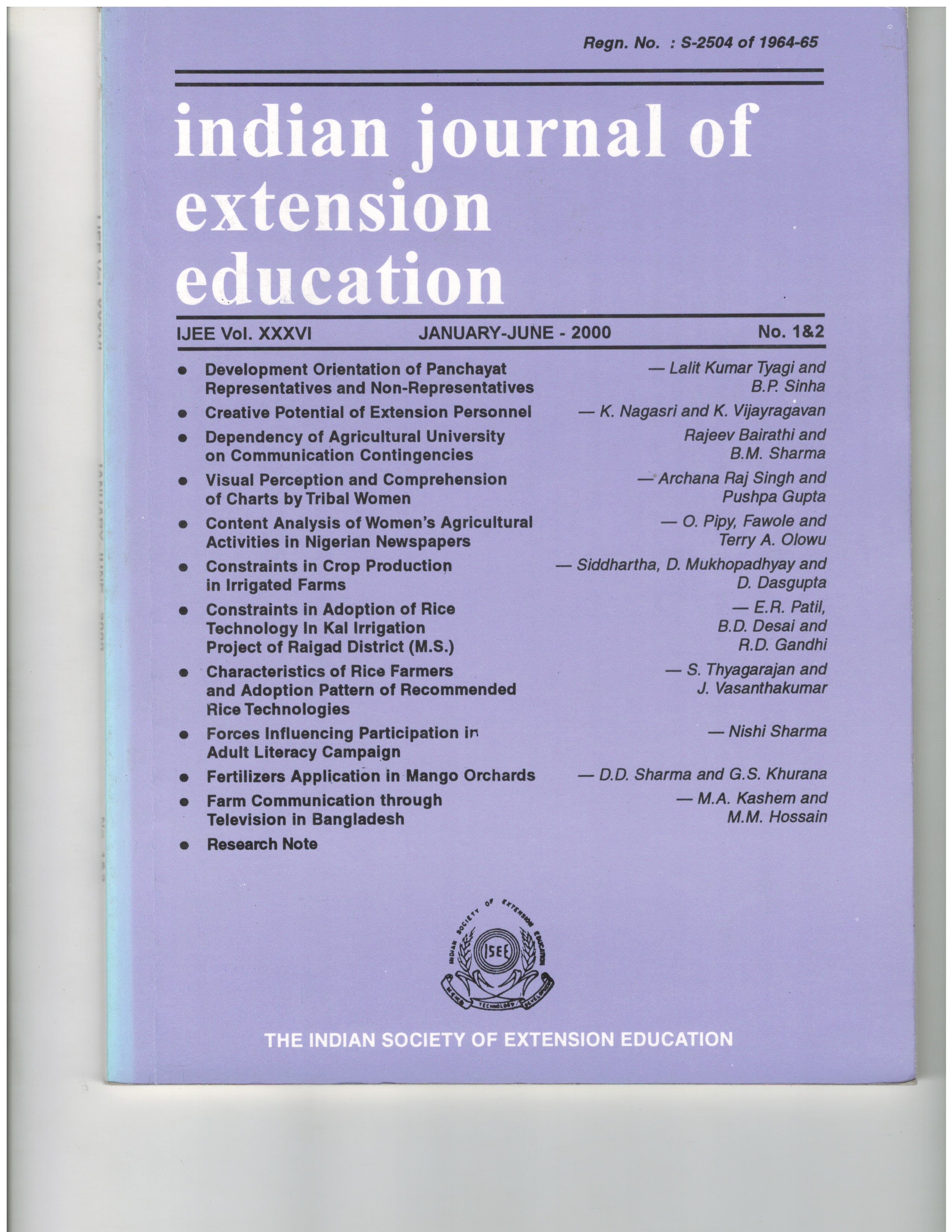 - The manuscripts once accepted and published in the Indian Journal of Extension Education will automatically become the property of the Indian Society of Extension Education, New Delhi. The Chief Editor on behalf of the Indian Journal of Extension Education holds the copyright.